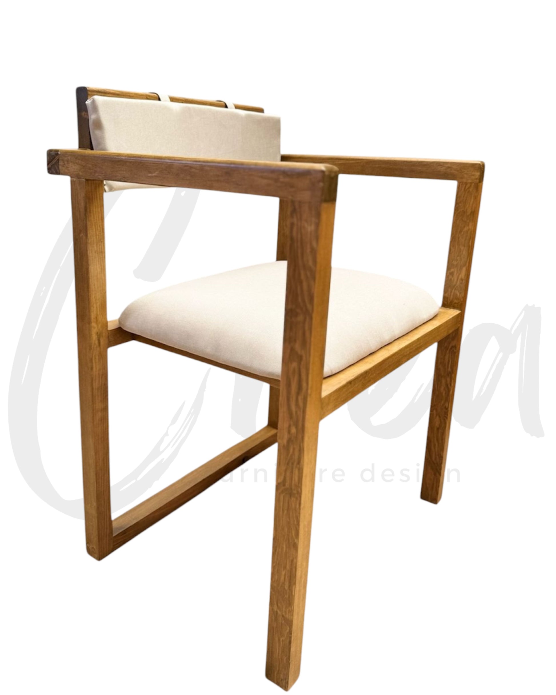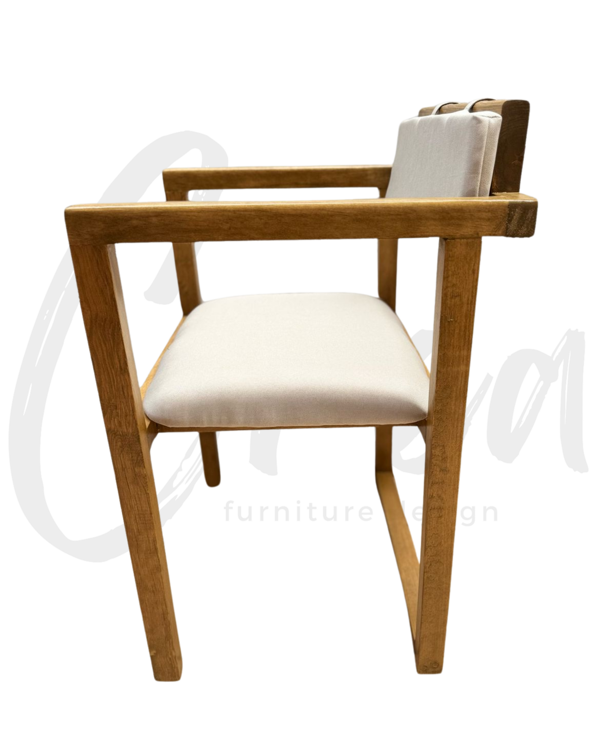 Diseñada para quienes aprecian la elegancia atemporal y la nobleza de lo esencial, la Silla Carlota es una pieza de carácter refinado que equilibra funcionalidad, calidez y diseño contemporáneo. Su estructura en madera solida con vetas visibles y acabado natural transmite autenticidad y calidad artesanal.